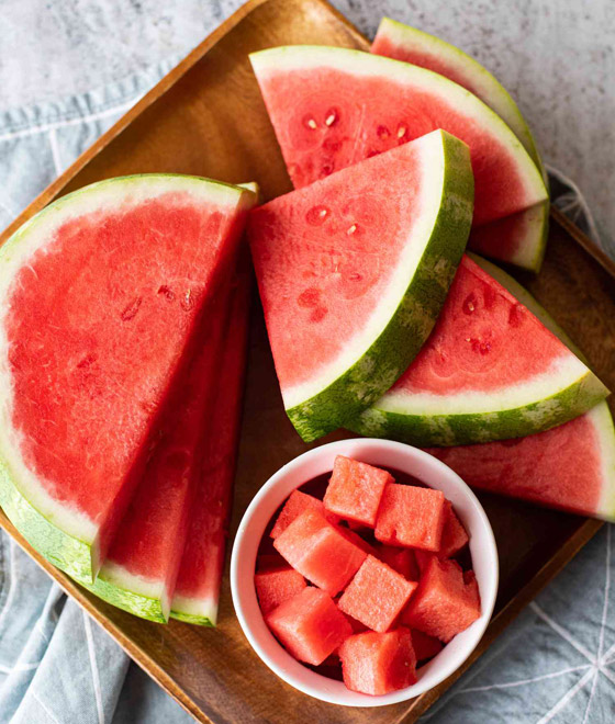 2. البطيخ: يعتبر البطيخ من أكثر الأطعمة التي تحتوي على نسبة عالية من الماء، حيث يتكون من نحو 90% من الماء. كما أنه غني بمضادات الأكسدة التي تحافظ على برودة الجسم.