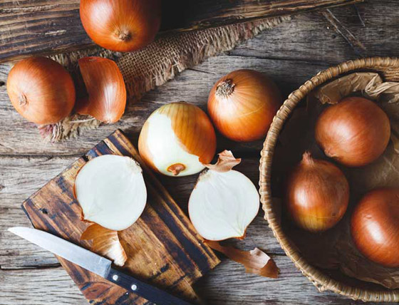 4. البصل: لا يهدئ البصل الجسم فحسب، بل يحمي الجسم أيضاً من ضربات الشمس، كما أنه يعدّ غذاء خارقاً سيحميك من الأمراض المختلفة النشطة في الصيف.