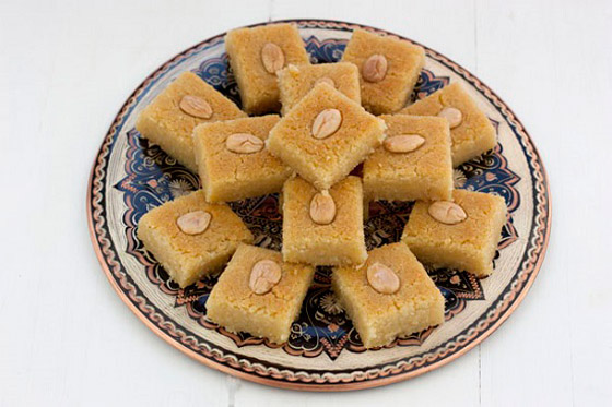 بعد أن تبرد البسبوسة، قطعها إلى مربعات صغيرة
