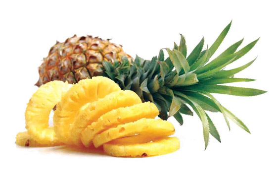 يحتوي الأناناس على إنزيمات هضمية. يمكن أن يساعد في تعزيز المناعة وتقليل الالتهاب، الأناناس غني بفيتامين B6 والبوتاسيوم والنحاس والثيامين، كوبًا واحدًا من الأناناس المفروم يحتوي على 79 مجم من فيتامين سي.
