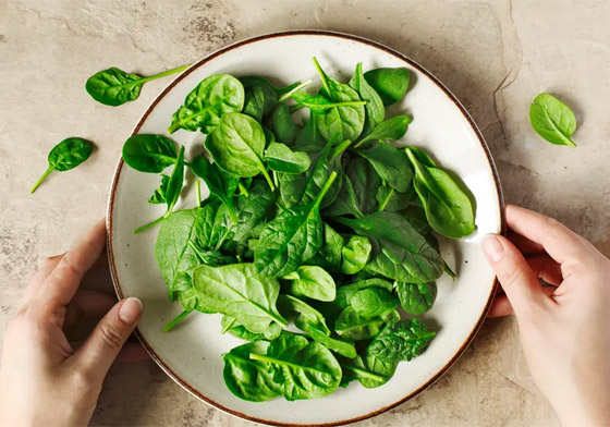 8. السبانخ: يوفر كوب واحد من السبانخ المطبوخة نحو 0.4 ملغ من الفيتامين.