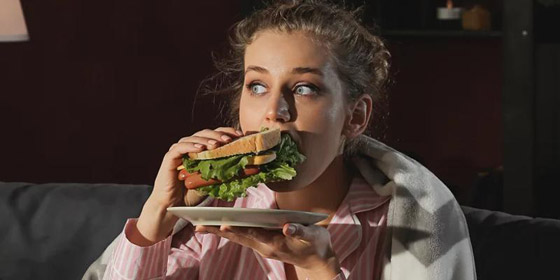 يتم تناول الوجبات الخفيفة في وقت متأخر من الليل في الغالب بدافع الملل أو بحكم العادة، مما يعني أن الشخص يتناول الكثير من السعرات الحرارية على الأرجح، مما يؤدي إلى زيادة الوزن بشكل غير مقصود. تحذر دكتورة كونيك من أن "تناول الوجبات الخفيفة في وقت متأخر قد يؤدي إلى زيادة الوزن، خاصة إذا كان يتم تناولها أثناء مشاهدة التلفزيون أو نشاط آخر لا يدرك فيه الشخص ما يأكله، لأنه يكون من السهل التهام المزيد من الطعام أكثر مما كان سيتناوله في ظروف أخرى"، ناصحة بأهمية اختيار الأطعمة المغذية منخفضة السكريات المضافة والدهون المشبعة، مع التركيز على الوجبات الخفيفة الغنية بالبروتينات والألياف لتعزيز الشبع ومنع الإفراط في تناول الطعام.