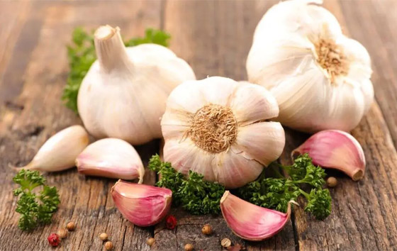 3- الثوم: يتميز الثوم بصفات طبية رائعة معروفة منذ العصور القديمة. كما أظهرت بعض الدراسات البحثية أن الثوم يمكن أن يكون مفيدًا كمضاد للجراثيم وللفطريات وللفيروسات. يحتوي الثوم على الأليسين، الذي يساعد على قتل البكتيريا المسببة لحب الشباب. كما أنه يساعد على تقليل التورم والالتهاب، وتحسين الدورة الدموية. ويحتوي الثوم على فيتامينات ومعادن أخرى مثل فيتامين C وفيتامين B-6 والسيلينيوم والنحاس والزنك.