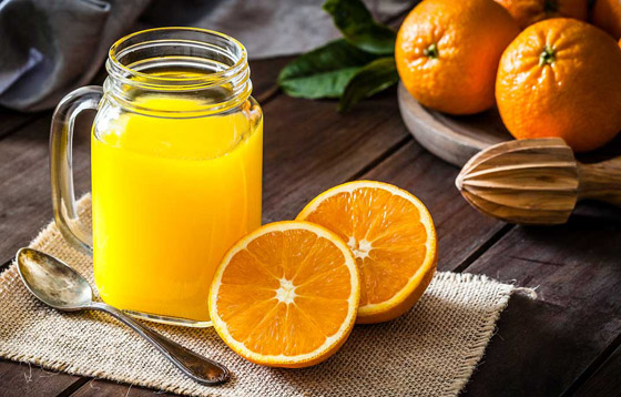 3. عصير البرتقال: يؤدي عصر البرتقال إلى إزالة الألياف وبالتالي يبطئ تحلل النشا إلى غلوكوز، لذا فإنه يُوصى بتناول الفاكهة بدل من العصير لتجنب ارتفاع مستويات السكر في الدم.