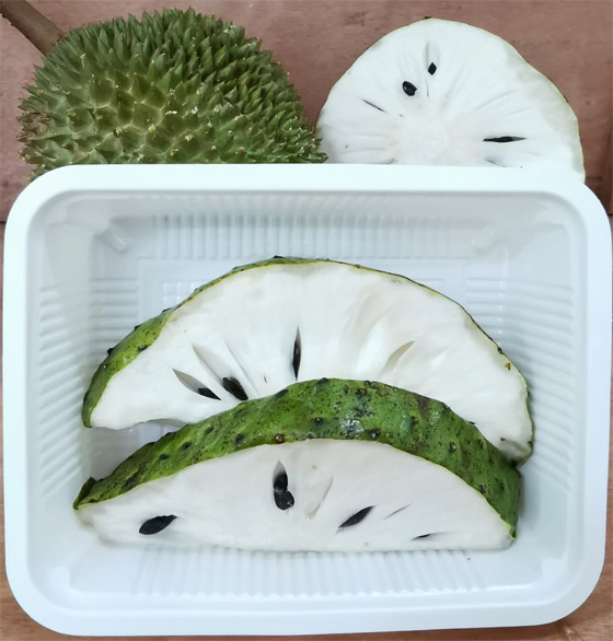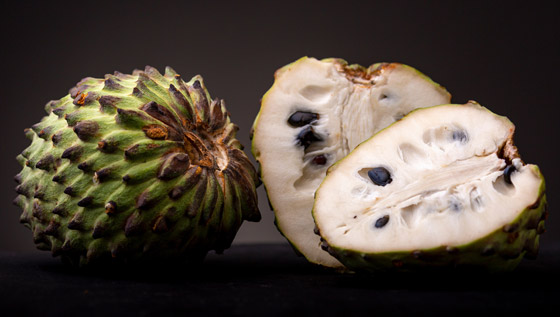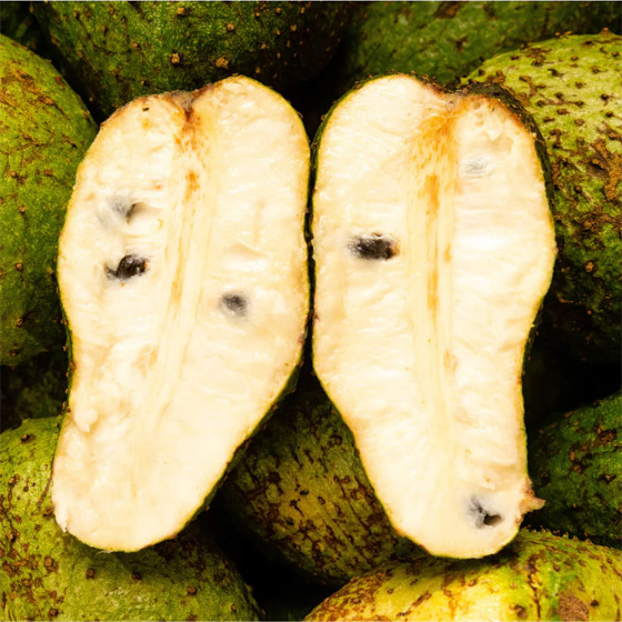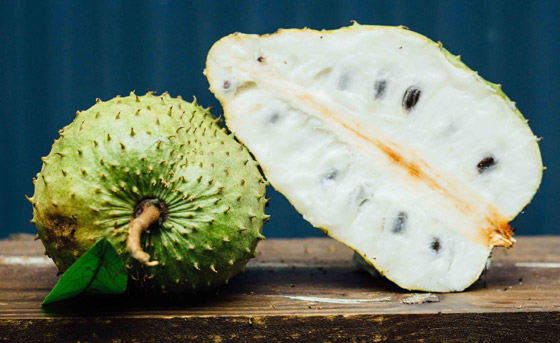 فاكهة الجرافيولا، موطنها الأصلي المناطق الاستوائية في الأمريكتين، وتنمو في أشجار تسمى أنونا موريكاتا. تحتوي هذه الفاكهة، ذات اللون الخارجي الأخضر والأشواك السوداء، على قوام كريمي ونكهة قوية، غالباً ما تُقارن بالأناناس والفراولة. يتم تناول الجرافيولا نيئة عن طريق تقطيع الثمرة إلى نصفين واستخراج اللب، وتأتي بأحجام مختلفة، بعضها كبير جداً، وبعضها متوسطة. تتميز الحبة المتوسطة من هذه الفاكهة بأنها منخفضة السعرات الحرارية، ولكنها غنية بالعديد من العناصر الغذائية، مثل الألياف وفيتامين C.