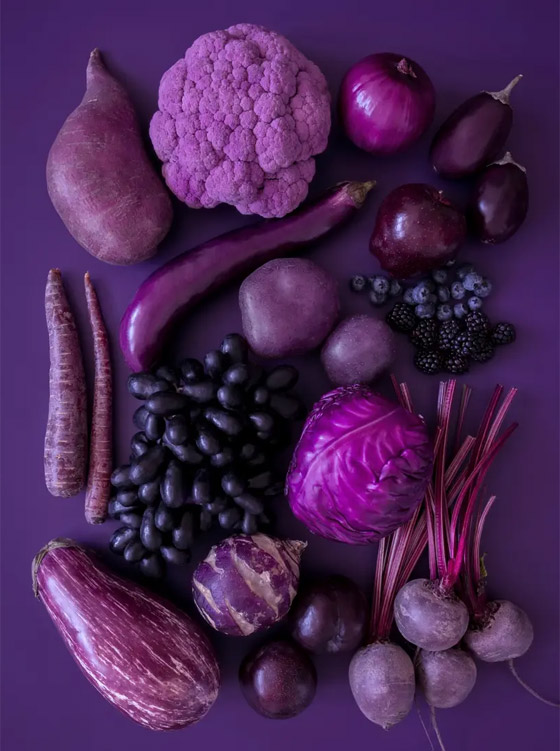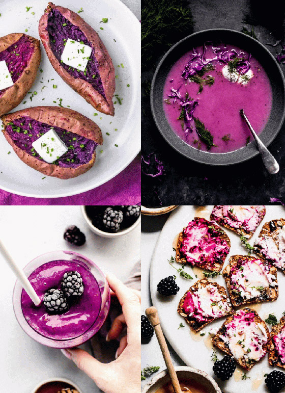 تشمل قائمة الأطعمة ذات الأرجواني الأكثر شعبية ما يلي: