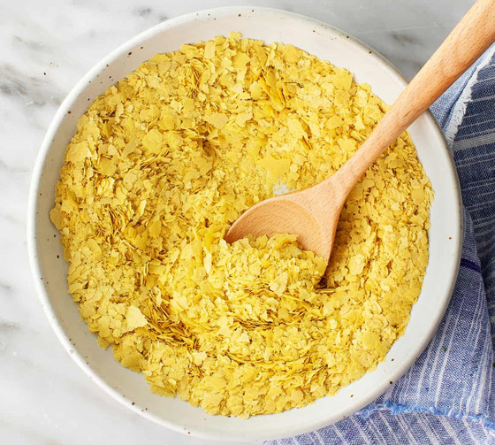 8. خميرة الغذاء: إن الخميرة الغذائية هي عنصر شائع بين النباتيين بسبب نكهتها الشبيهة بالجبن. كما أنها مدعمة بفيتامين B12، ما يجعلها إضافة ممتازة لمختلف الأطباق.