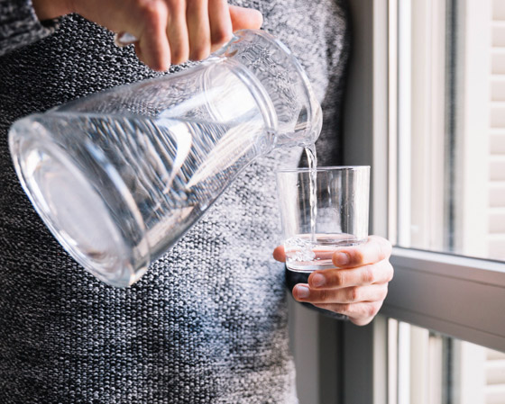 شرب لترين من الماء غير مقتصرًا على فصل الصيف، فأنتِ بحاجة إلى شرب الكثير من الماء في الشتاء أيضًا، خاصة وأن الهواء جاف جدًا. الماء هو المسؤول عن معظم الأداء الصحي لجسمنا. فهو يساعد على تعزيز المناعة والحفاظ على صحة بشرتكِ وشعركِ ويحافظ أيضًا على مستويات الطاقة. حاولي أن تشربي ما لا يقل عن ثمانية أكواب من الماء يوميًا. بالإضافة إلى الماء، يمكنك أيضًا شرب عصير الفاكهة الطبيعي، أو شاي الأعشاب، أو المرق.