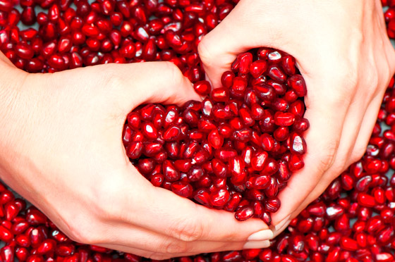 يدعم الرمان صحة القلب، حيث يحتوي على مستويات عالية من مضادات الأكسدة التي تساعد على حماية جدران الشرايين وتقويتها. وتوصل الباحثون إلى أن عصير الرمان له تأثير علاجي في حالات تصلب الشرايين، بسبب مادة الـ"بوليفينول" المضادة للأكسدة.