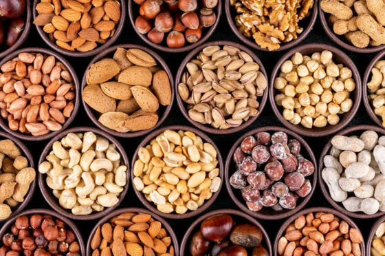 2. المكسرات والبذور: يعد اللوز والجوز وبذور الكتان مصادر ممتازة للدهون الصحية والبروتين والألياف، فهي توفر طاقة طويلة الأمد وتساعد في الحفاظ على درجة حرارة الجسم.
