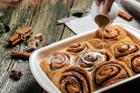 ثم نزين السينابون بصوص الجبن عقب خروجه من الفرن.