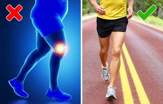 11. الركض لا يضر الركبتين: لا يضر الركض بالركبتين إذا مارسته ممارسةً صحيحة. ولكن، لا تركض حافي القدمين، واختر أحذيةً مريحة، واحسب مدى قوتك، كما يجب ألا يركض المبتدئون أكثر من 3 إلى 4 مرات أسبوعياً.
