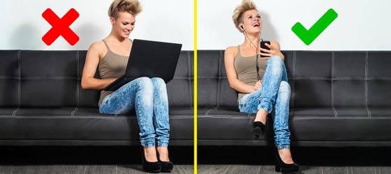 9- ليس هناك ضرر في وضع إحدى الساقين فوق ركبة الساق الأخرى في أثناء الجلوس: لم تثبت الأبحاث أنَّ الجلوس بهذه الطريقة يُسبب تلف الأعصاب أو الإصابة بالدوالي، وهي لا تؤدي كذلك إلى أي ضررٍ خطير؛ لأنَّ ضغط الدم يعود لطبيعته عند تغيير وضع الجسد. لكن يُستثنى من ذلك، الأشخاص المعرّضون للإصابة بالجلطات؛ لذا يجدر بهم تجنب الجلوس في هذا الوضع.