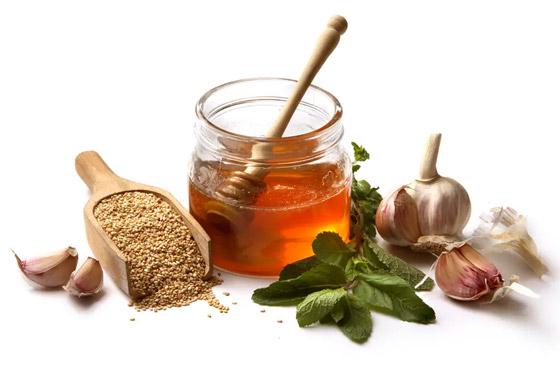 2- ماء بالعسل والثوم: إن مزج عجينة من ثلاثة فصوص من الثوم مع ملعقة من العسل في كوب من الماء الفاتر وتناولها على الريق في الصباح يخفف من مشكلة ارتفاع الكوليسترول.
