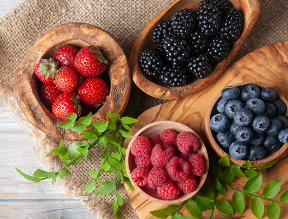 6- الفواكه والتوت: من أجل خفض مستويات الكولسترول السيء، ينصح بتناول الفواكه مثل التفاح والفراولة الغنية بالألياف القابلة للذوبان. وإلى جانبهما حاول تضمين التوت أيضاً بسبب خصائصه المضادة للأكسدة وللالتهابات.