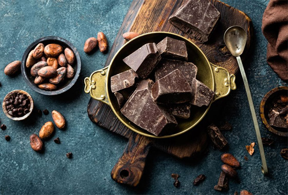 7- الشوكولاتة الداكنة: يُعتقد أن الشوكولاتة الداكنة التي تحتوي على نسبة كاكاو 75-85 % لديها القدرة على خفض نسبة الكوليسترول الضار. ومن المعروف أيضاً أن الكاكاو يساهم في إدارة الكوليسترول بسبب اشتماله على مركبات مثل البوليفينول والريسفيراترول.
