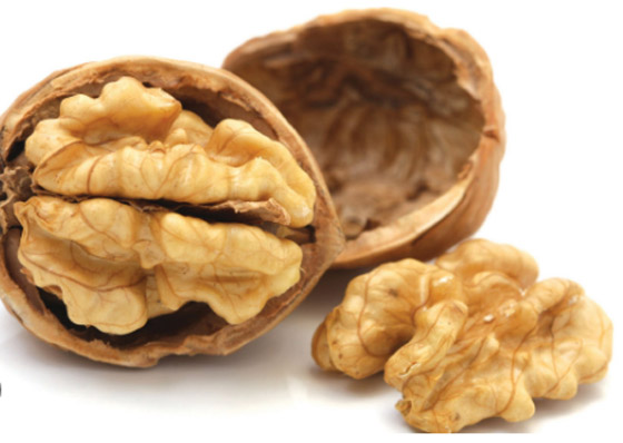 يحتوي الجوز (عين الجمل) على نسبة عالية من أحماض أوميغا-3 الدهنية والنحاس، مما يعزز صحة الشعر ويمنع ظهور الشيب مبكراً.