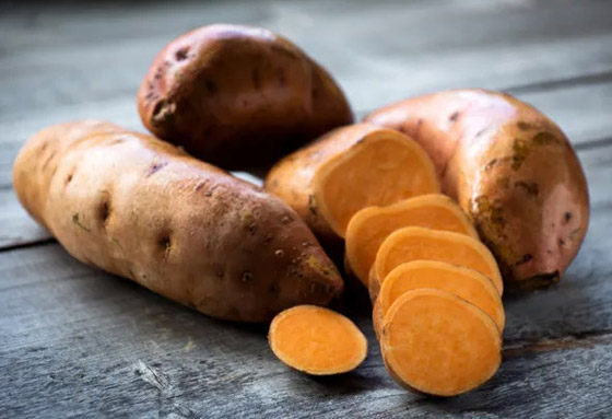 6. البطاطا الحلوة: تدعم البطاطا الحلوة إنتاج الصبغة المسؤولة عن لون الشعر.