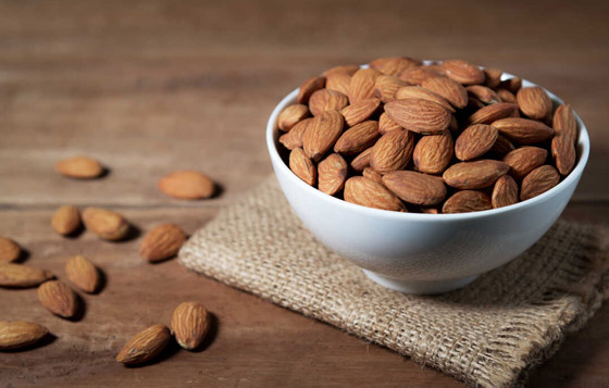 7. اللوز: لأنه غني بالفيتامينات E وB، يساهم اللوز في صحة الشعر بشكل عام وقد يمنع الشيب المبكر.