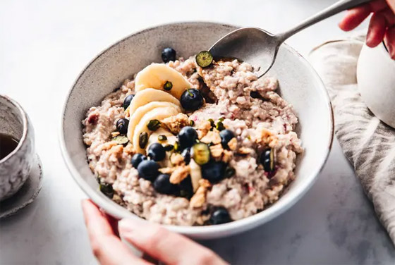 2. الشوفان: يعتبر الشوفان من العناصر الأساسية في وجبة الفطور، فهو يحتوي على نسبة عالية من الكربوهيدرات والألياف، مما يجعله خيارًا ممتازًا لمستويات الطاقة المستدامة. كما يحتوي الشوفان على البيتا جلوكان، الذي يمكن أن يساعد في خفض مستويات الكوليسترول في الدم.