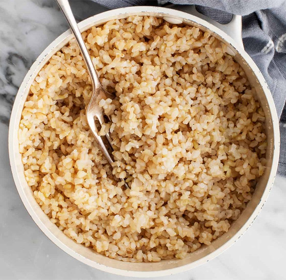 8. الأرز البني: على عكس الأرز الأبيض، يحتفظ الأرز البني بطبقات النخالة، مما يجعله مصدرًا جيدًا للألياف والفيتامينات والمعادن بالإضافة إلى احتوائه على نسبة عالية من الكربوهيدرات.