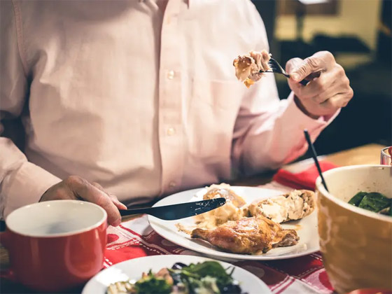 أولاً: الأكل دون اكتراث، حيث يتحدث الخبراء عن ضرورة "اليقظة الذهنية" خلال تناول الطعام، وهذه اليقظة تساعد على الاستمتاع بالأكل ومنع التلبكات في المعدة، إضافة الى ضمان صحة جيدة للقلب. وأوصت تامار صامويلز بالحد من عدد عوامل التشتيت أثناء تناول الطعام والاستماع إلى إشارات الجوع والشبع في جسمك. وأضافت الخبيرة: "هذا يساعدك على الاستمتاع بطعامك أكثر ويحد من الإفراط في تناول الطعام.. هل تعلم أن الأمر يستغرق حوالي 20 دقيقة حتى يتصل دماغك بمعدتك بأنها ممتلئة؟ عندما تجلس أمام التلفزيون أو تنظر إلى هاتفك أثناء تناول الطعام، فإنك تميل إلى عدم منح نفسك الوقت الكافي لهذه الإشارات للقيام بعملها، وينتهي بك الأمر إلى الإفراط في تناول الطعام".