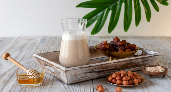 عصير الحليب والتمر لا يُسهم فقط في تجديد الطاقة وتحسين مستويات السكر في الدم بعد فترة الصيام، بل يساعد أيضاً في تحسين الهضم، ويقدم ترطيباً مثالياً للجسم. إضافة إلى ذلك، يمتاز بقدرته على توفير شعور بالشبع والرضا، ما يساعد في تنظيم الشهية، ويقي من الإفراط في تناول الطعام خلال الوجبات اللاحقة. بالتالي، يُعتبر عصير الحليب والتمر خياراً مثالياً للإفطار يجمع بين الطعم اللذيذ والفوائد الصحية المتعددة.