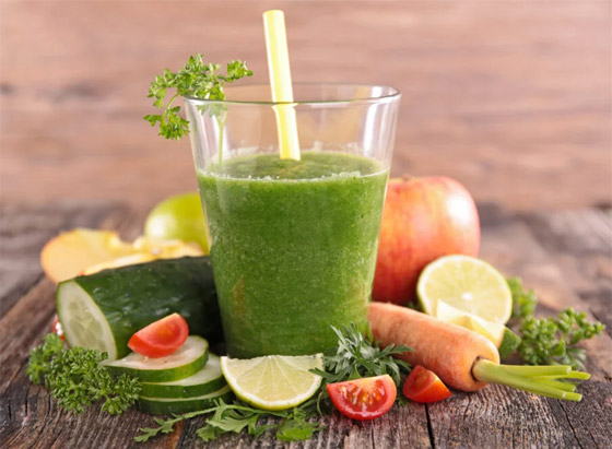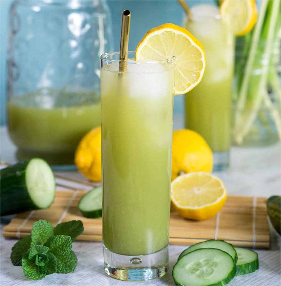 5. عصير الخيار والليمون: الخيار منخفض في السعرات الحرارية والكربوهيدرات، بينما يضيف الليمون نكهة دون التأثير بشكل كبير على مستويات السكر في الدم، فإن عصير الخيار والليمون يكون منعشاً ومرطباً بالإضافة على كونه غني بفيتامين C ومضادات الأكسدة.