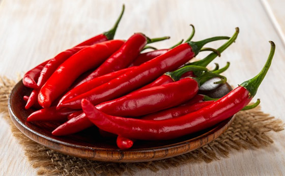 3. الفلفل الحار: إن الكابسيسين هو المركب الرئيسي في الفلفل الحار الذي يمنحه حرارة ونكهة مميزة، والذي يقلل من الشهية ويعزز حرق الدهون. وتوصلت إحدى الدراسات إلى أن تناول الفلفل الحار مع الوجبات الرئيسية يزيد من الشعور بالشبع ويقلل من الرغبة في تناول الطعام، مما يساعد على التحكم في السعرات الحرارية. غير أنه لا توجد كمية محددة من الفلفل الحار أو مسحوق الفلفل الحار (الكابسيسين) للتحكم في الشهية. لكن يمكن دمج كميات معتدلة في الوجبات بما يساعد على الشعور بالشبع لفترة أطول والحد من الرغبة الشديدة في تناول الطعام.