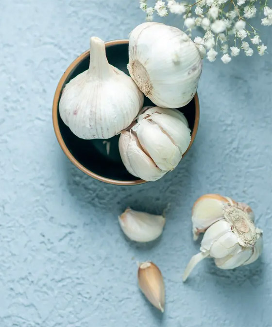 2- الثوم: لا يندرج الثوم ضمن الأطعمة الغنية بالكولاجين كونه لا يحتوي على هذا البروتين في تركيبته، ولكنه يلعب دوراً مهماً في تعزيز إنتاج الكولاجين في الجسم. ويتميّز الثوم بغناه بالكبريت، وهو معدن أساسي لإنتاج الكولاجين، كونه يساعد على تقوية الروابط المتقاطعة في ألياف الكولاجين مما يُحسّن قوتها ومتانتها. للاستفادة من مزايا الثوم في هذا المجال، يُنصح باستهلاكه نيئاً أو مهروساً.