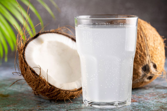 3. ماء جوز الهند: إلى ذلك، يمكن تناول ماء جوز الهند الغني بشكل طبيعي بالإلكتروليتات، والذي يساعد على ترطيب الجسم والحفاظ على توازن الإلكتروليتات. إذ يوضح الخبراء أن ماء جوز الهند منخفض بشكل طبيعي في السعرات الحرارية والسكر، ما يجعله خياراً رائعاً لإعادة الترطيب.