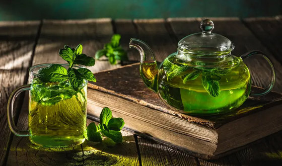 5. شاي النعناع: هذا ويمكن أيضا شرب شاي النعناع المفيد للهضم والذي يخفف الانتفاخ، ويعطي طعماً بارداً ومنعشاً، لاسيما أنه يعتبر مثاليا بعد وجبة الفطور.
