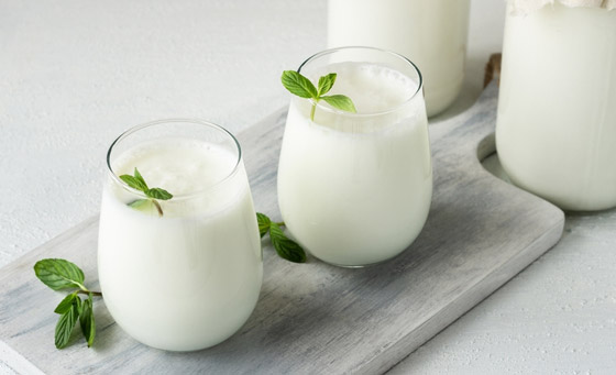 7. اللبن الرائب: فيما يعتبر اللبن مشروباً بروبيوتيكاً يدعم صحة الأمعاء ويساعد على الهضم. كما أنه مصدر جيد للكالسيوم والبروتينو. يمكن تحضير مشروب اللبن الرائب في المنزل عن طريق خلط الزبادي بالماء وقليل من الملح وبعض الكمون أو الكزبرة للنكهة.