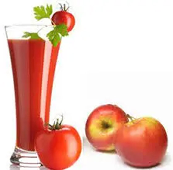 7- عصير الطماطم والتفاح: هذا المشروب غني بالفيتامينات والحديد والألياف. فهو من المشروبات التي ينصح بها خبراء التغذية على وجبة الإفطار. فيمكنك خلط التفاح المقشور مع حبات الطماطم مع إضافة القليل من الماء وبعض قطرات الليمون وملعقة من عسل النحل. يخفق جيداً ويقدم على وجبة الإفطار لتحصل على شروب غني بالفوائد الغذائية.