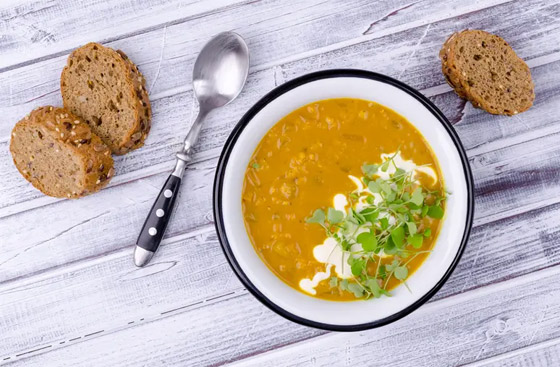 1. حساء العدس: يحتوي على البروتين والفيتامينات والمعادن، وهو مفيد لتعزيز صحة الجهاز الهضمي.