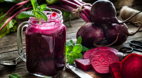 يعزز عصير الشمندر القدرة على التحمل. فهو غني بالنترات ويُحسّن تدفق الدم ومستويات الطاقة والأداء الرياضي. ويُعد عصير الشمندر مصدرًا جيدًا للحديد. كما أنه يُساعد على خفض ضغط الدم، ما يُعزز وظائف القلب وصحة الأوعية الدموية.