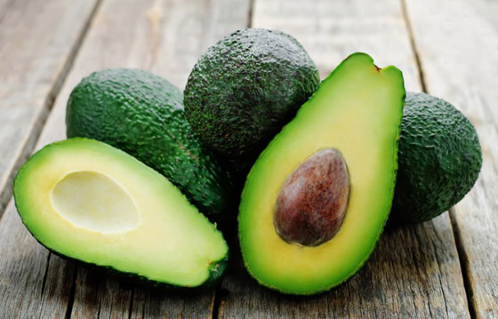 7. الأفوكادو: يمكن استخدام الأفوكادو عصيرا أو في العديد من الأطباق الأخرى، مثل السلطة. فهو يحسن الصحة العامة ويعمل على تقليل الكولسترول السيئ وكذلك يخفض ضغط الدم بسبب غناه بفيتامين E.