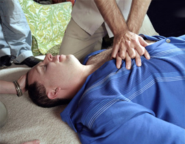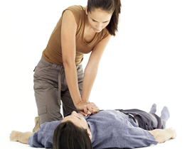 - تأكد من النبض وإذا كان متوقفاً قم بتمسيد القلب.