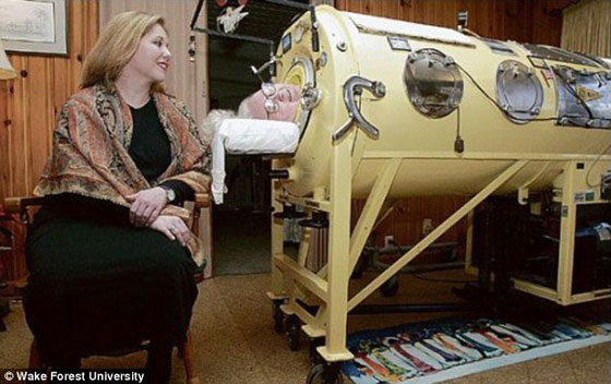عاشت ماسون حياتها كلها تقريبا في مثل هذا الخزان الذي يعمل على الضغط لتضييق وتوسيع رئتيها عندما تعجز عضلاتها على القيام بوظيفة التنفس. وكان الأطباء قد توقعوا لها العيش لمدة عام إضافي كأقصى حد، ولكنها تحدت الطب بفضل فضولها وتعطشها للحياة ورغبتها في التعلم المستمر.