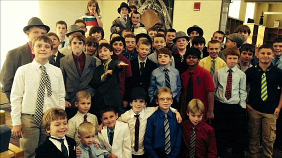 وفي يوم الاربعاء الماضي جاء كوني و44 طالبا آخر من طلاب الصف الخامس في المدرسة ووقفوا حول داني البالغ من العمر ست سنوات، جميعهم يرتدون سترات وربطات عنق. وهتف داني مبتهجاهذا هو أفضل يوم في حياتي" . وهتف الطلاب الأكبر سنا باسمه واظهروا له كم يحبوه.