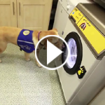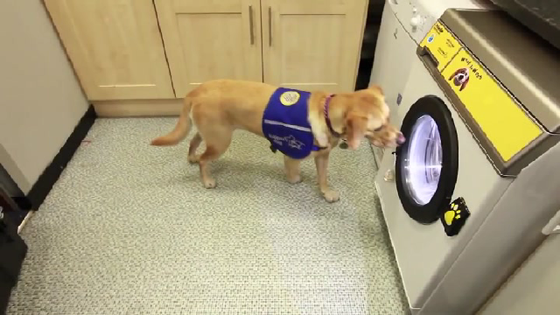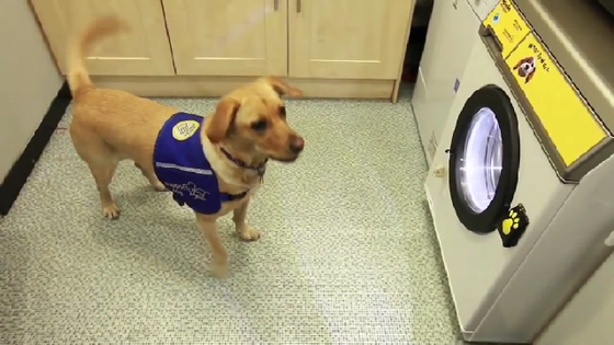 نجح مخترع بريطاني بالتعاون مع إحدى الجمعيات الخيرية التي تدرب الكلاب على مساعدة ذوي الاحتياجات الخاصة، في تطوير غسالة تعمل بنظام خاص يمكن الكلاب التعامل معها، واستخدامها لغسل الملابس. ومع هذا الابتكار لن يقتصر دور الكلاب المدربة على وضع الغسيل داخل الغسالة، بل سيمكنهم أيضًا تشغيلها بنباحهم، والانتظار حتى انتهاء دورتها وفتحها واستخراج الغسيل منها جافًا ونظيفًا، وذلك عن طريق إضافة نظام ميكروفون قادر على التعرف على نباح الكلب للغسالة وقطعة حبل لباب الغسالة لتمكين الكلاب من فتحه بفمهم.