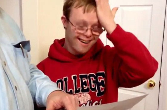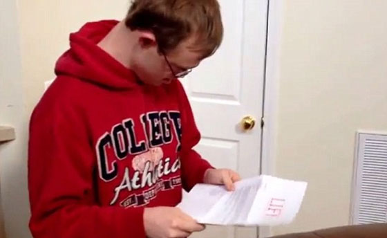 القبول للجامعة هو لحظة هامة وكبيرة في حياة أي إنسان، ولكن بالنسبة للطالب ريون هولكومبي والذي لديه متلازمة داون (داون سيندروم)، هي لحظة بل هو يوم الذي لن ينساه أبدا. وقد قام والدا ريون البالغ من العمر 20 سنة من ولاية كارولينا الجنوبية بتصويره لحظة بدأ في فتح رسالة وصلته من جامعة كليمسون. وبعد قراءة هذه الرسالة بمساعدة والده بدا في غاية السعادة وعدم التصديق ونظر الى الكاميرا وهو يقول مع ابتسامة كبيرة: لقد قالوا نعم. لقد قبلوني. وقالت والدته: نعم، ستكون طالب جامعي في السنة القادمة.