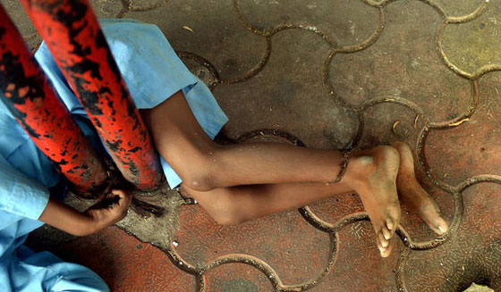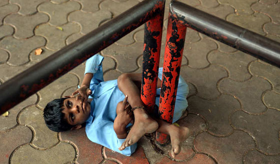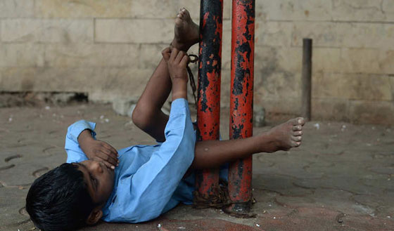 هكذا يقضي الطفل الهندي، لاكهان كيل، 9 سنوات، وهو من ذوي الاحتياجات الخاصة، طفولته مربوطا بخرقة قماش بالية، إلى عمود حديدي بموقف حافلة عامة في مدينة مومباي. كيل، وهو أصم وأبكم ويعاني من الصرع، راقدا على الرصيف دون أن يعبأ به المارة. تقول جدة كيل انها تضطر لتوثيقه حفاظا على سلامته ريثما تذهب لجمع قوت يومهما من بيع الدمى والورود بشوارع مومباي.