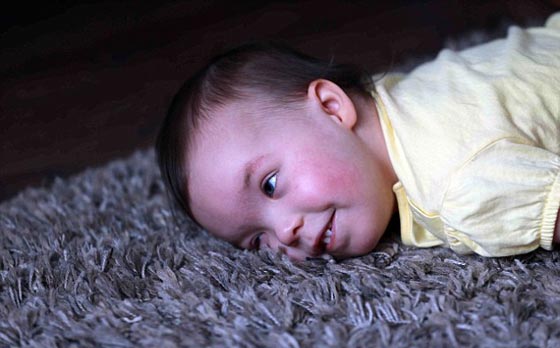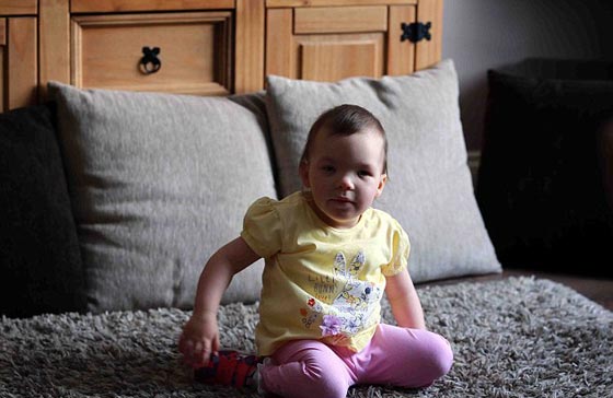 طفلة تتمكن من السير لأول مرة في حياتها