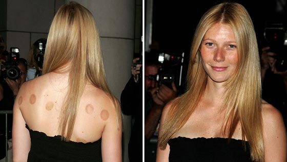 وقام الكثير من مشاهير هوليوود في تجربة الحجامة، على سبيل المثال الممثلة غوينيث بالترو التي ظهرت للصحف للمرة الأولى قبل حوالى عشرة أعوام على السجادة الحمراء مع علامات الحجامة المستديرة على ظهرها، وقالت: "إنه شعور رائع وانها مريحة للغاية". وقام نجوم آخرون أيضاً بتجربتها، مثل جيسيكا سيمبسون وليدي غاغا وفيكتوريا بيكهام، الذين تحدثوا عن فوائدها الكثيرة في جعل الجسم أكثر استرخاءً. وفي العام 2004، ظهرت الممثلة جوينيت بالترو في فيلم وعلى ظهرها آثار حجامة.