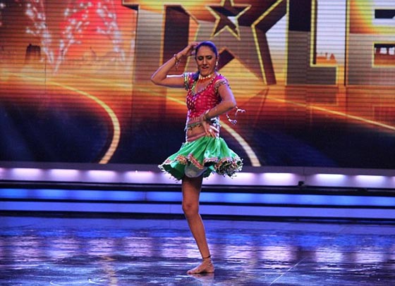 سوبهريت في برنامج "غوت تالنت" وهي ترقص بساق واحدة على إحدى أغاني بوليوود