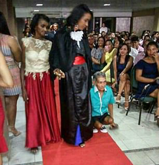 لم يسمح اب من ذوي الاحتياجات الخاصة لإعاقته، ان تمنعه من حضور حفل تخرج ابنته من كلية المحاماة. فرغم عدم حيازته لكرسي متحرك، استخدم يديه وسط تأثر وتصفيق الحاضرين، ليمشي قرب ابنته الجامعية اثناء توجهها لاستلام شهادتها. وقال الاب الكسندر جوزيه دا سيلفا، 79 عاما، "لا يمكن ان اتغيب عن هذا الحدث الأهم والاسعد في حياة ابنتي وحياتي.."