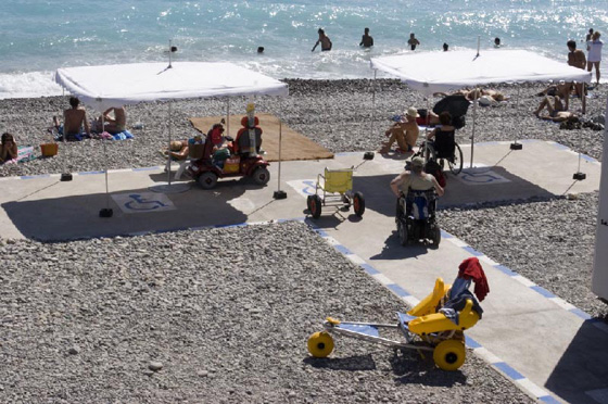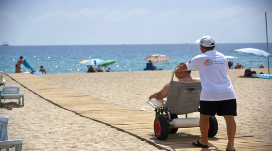 وعقب انتهاء المراسم، نزل بعض ذوي الاحتياجات الخاصة البحر، بمساعدة الموظفين هناك. وتم تخصيص الشاطئين المذكورين بشكل يتناسب مع احتياجاتهم، بحيث يضمان غرفاً لتغيير الملابس، ووحدة خاصة بداخلها حمام، وكراسي متحركة، وممر خاص لدخول البحر، وموظفون أمنيون إضافة إلى منقذين تم تخصيصهم من قِبل البلدية.