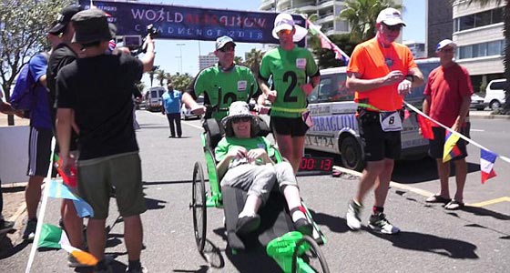 في إنجاز غير مسبوق، تمكنت سيدة من ذوي الاحتياجات الخاصة، تبلغ من العمر 26 عامًا، من تحقيق إنجاز مهم، بعدما نجحت في إنهاء سبعة سباقات ماراثون، في سبع قارات، خلال سبعة أيام فقط. وفي التفاصيل، فقد أصبحت السيدة، وتدعى "جوهانا غارفين"، من مدينة سيدني الأسترالية، أول امرأة تكمل مجموعة من سباقات الماراثون في غضون سبعة أيام، قطعت فيها مسافة 259 كم على كرسيها المتحرك. وقد تلقت "جوهانا" المساعدة والدعم من العدائيْن الأسترالييْن "جيمس ألدرسون وستيف بيرني"، اللذيْن دفعا كرسيها المتحرك طوال الماراثون بالتناوب.