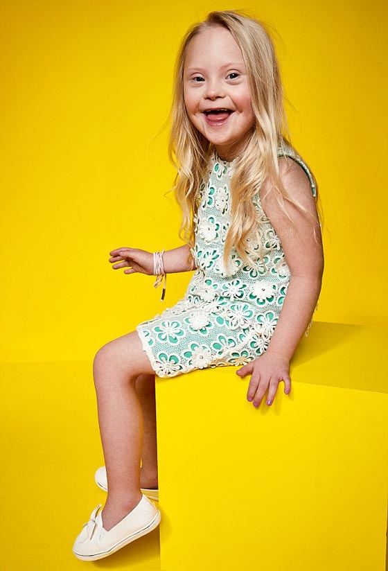 هذه هي أول وظيفة للطفلة كورا بيشوب، كعارضة ازياء. كورا لديها داون سيندروم، تبلغ من العمر 6 سنوات وهي من شمال ويلز. ابتسامتها الساحرة لفتت نظر الشركة وحاولت كورا المرحة جعل جميع الموجودين يضحكون اثناء تصوير لقطاتها. وقالت أمها الفخور شيريل بيشوب: "إنها فتاة تحب الفساتين وإظهار جمالها، واستمتعت بتجربتها في عرض الأزياء والتصوير جدا".